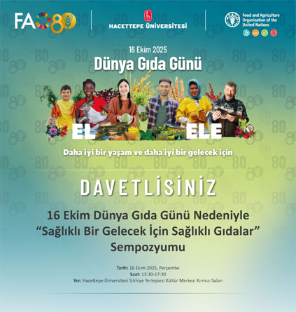Hacettepe Üniversitesi Sosyal Sorumluluk Uygulama ve Araştırma Merkezi (HÜSSAM) ve Birleşmiş Milletler Gıda ve Tarım Örgütü (FAO) İş Birliğinde 16 Ekim Dünya Gıda Günü Nedeniyle 16 Ekim 2025, Perşembe günü Hacettepe Üniversitesi Sıhhiye Yerleşkesi Kültür Merkezi Kırmızı Salon'da saat 13.30-17.30 arasında "Sağlıklı Bir Gelecek İçin Sağlıklı Gıdalar" Sempozyumu düzenlenmiştir.